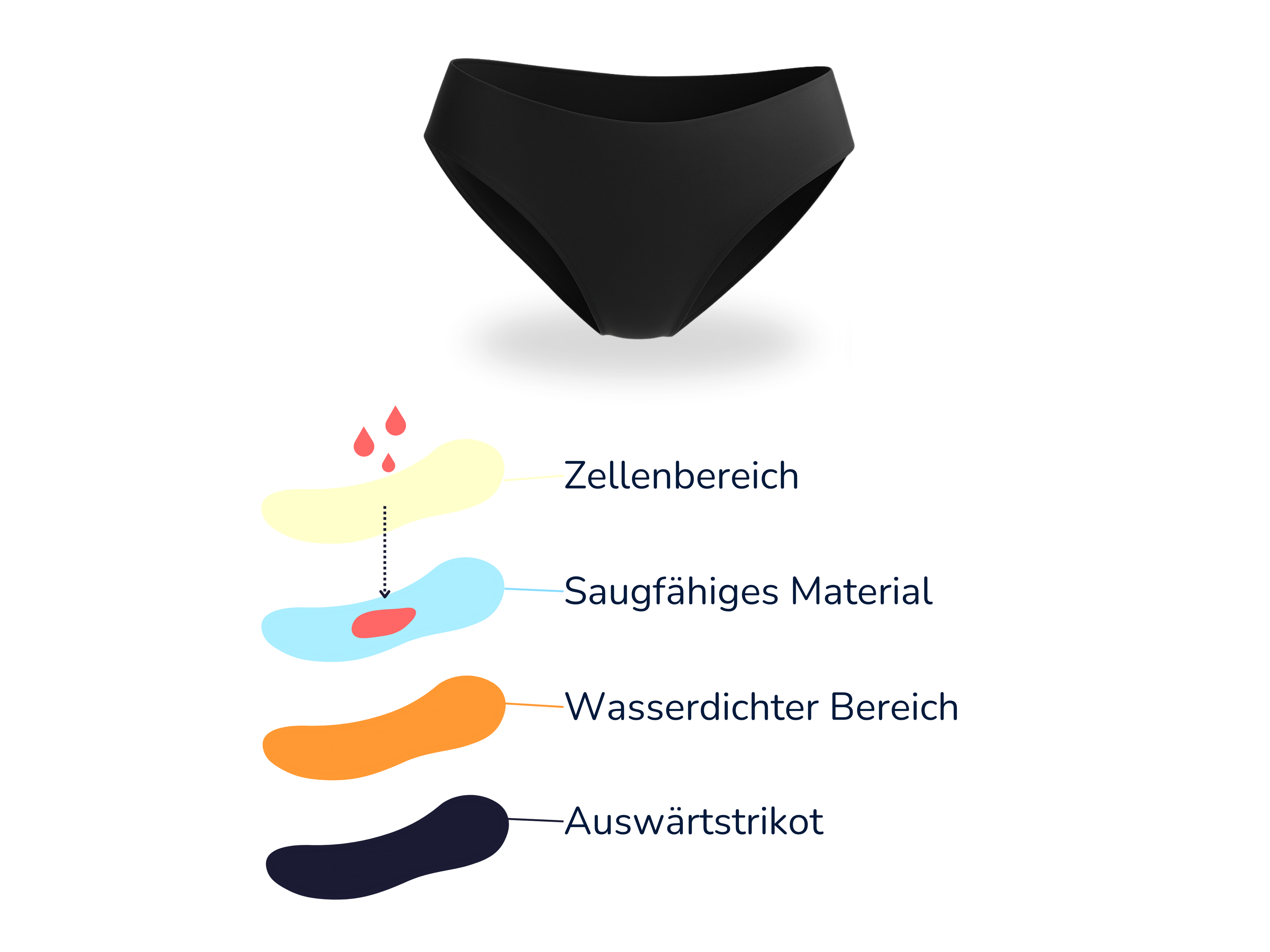 - 1 Saugfähiger Stoff: hält den Menstruationsfluss zurück