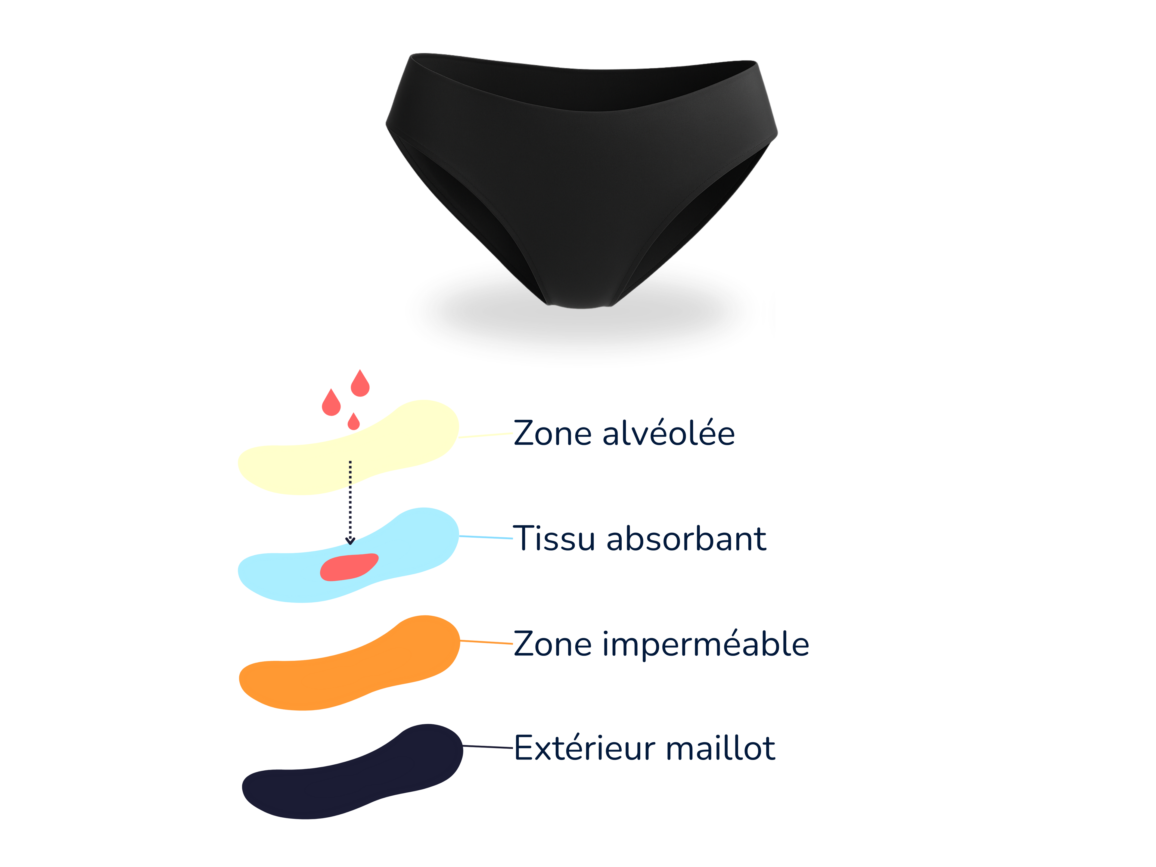 • 1 Tissu absorbant : retient le flux menstruel